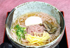 | とりわけ、今の季節でしか味わえない桜そばの香りと味を絶賛。そのきれいな色に、「外の桜が映り込んだのでは」との声をいただきました。 |