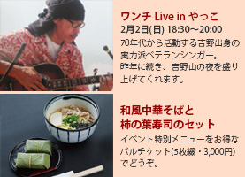 やっこでは特別ライブやメニューで皆様のお越しをお待ちしています。